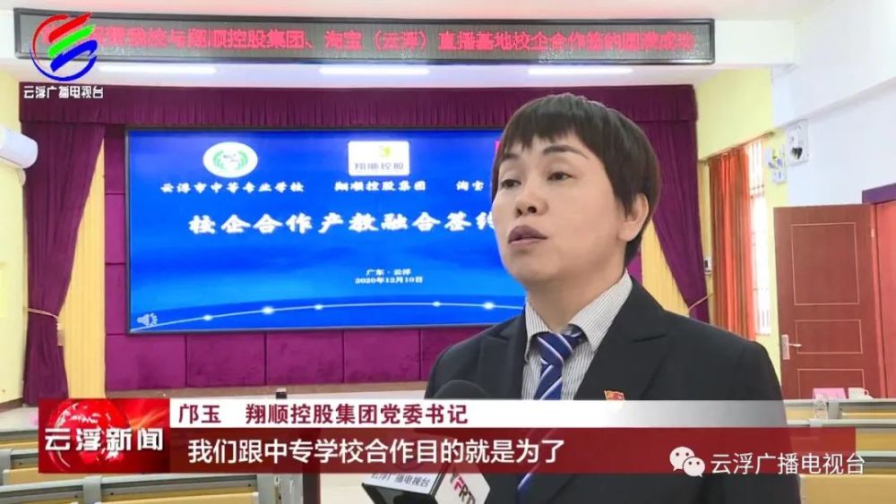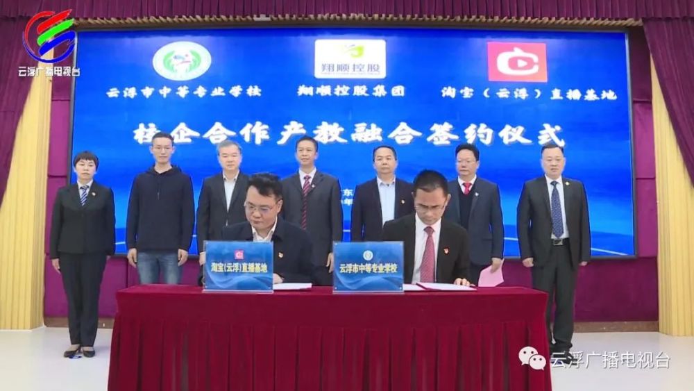 前天上午,云浮市中等专业学校与翔顺控股集团、淘宝(云浮)直播基地签署校企合作协议,标志着双方将在高素质人才培养以及创新实践等多方面进行合作。