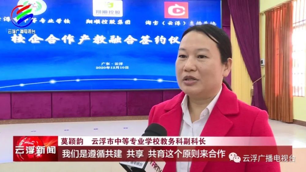 张毅敏:“云浮中等专业学校是我们首间签约的学校,我们进入学校以后和学校的教学大纲、教学的内容是紧紧地配合起来的,并且教学的内容是往社会经济方面来引出去,并往实践的氛围去营造。”
