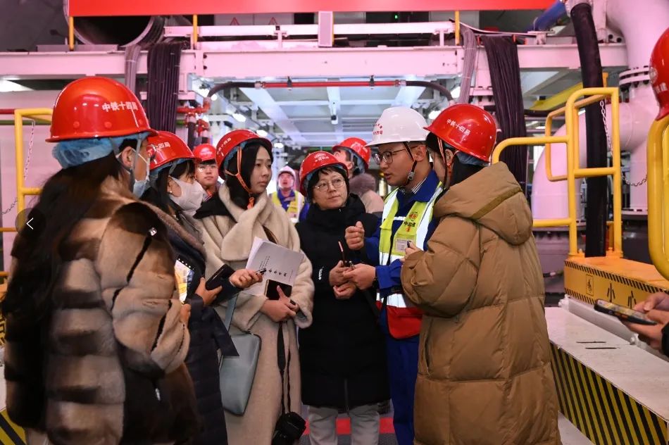 2月5日,10余家中央和行业媒体记者走进中铁十四局京唐城际铁路,深入施工现场,了解大盾构施工情况,采访春节期间坚守岗位的建设者。图为记者在现场采访建设者。刘春雨摄
